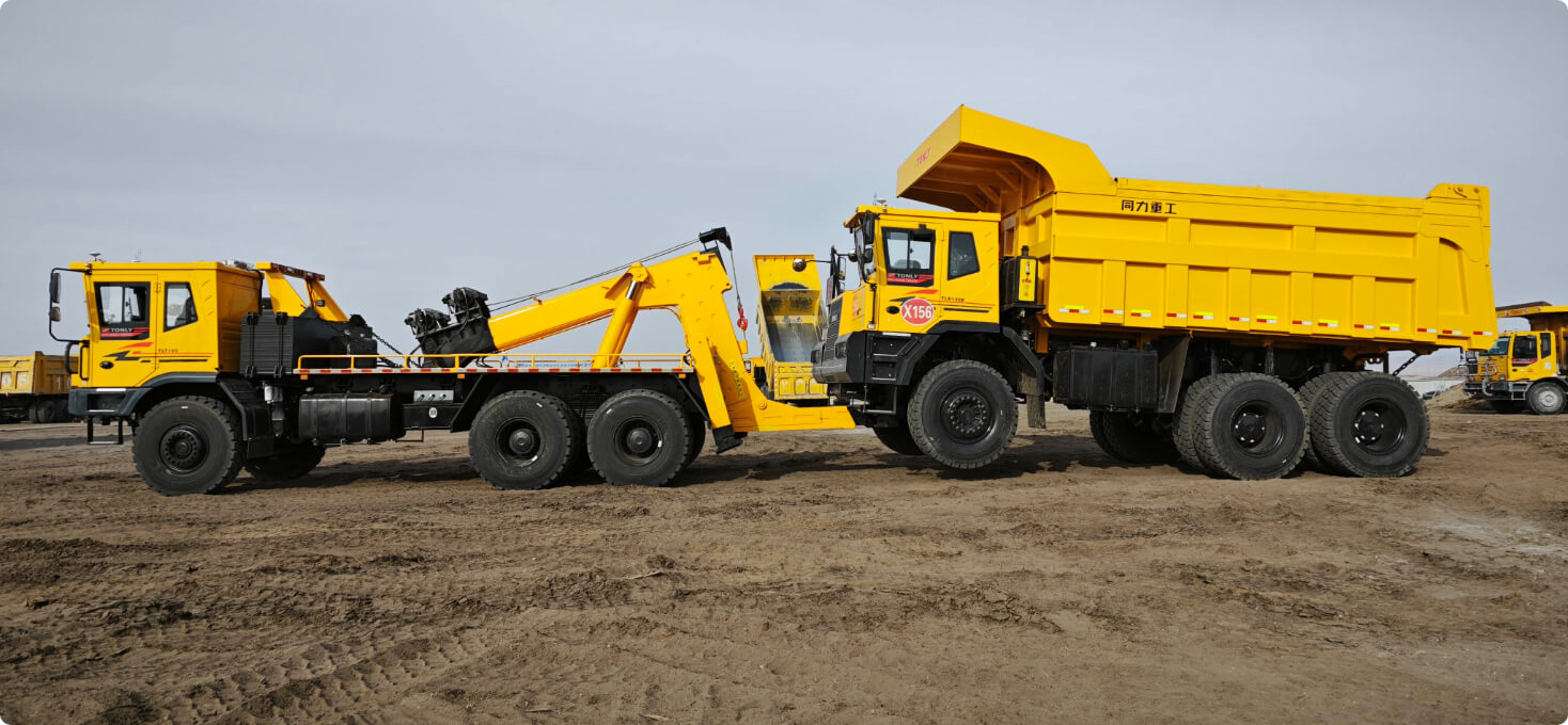 拖牽效率高:配置成套專用可更換拖車工裝,滿足不同型號(hào)寬體自卸車的拖牽,拖車接口“即插即用”。